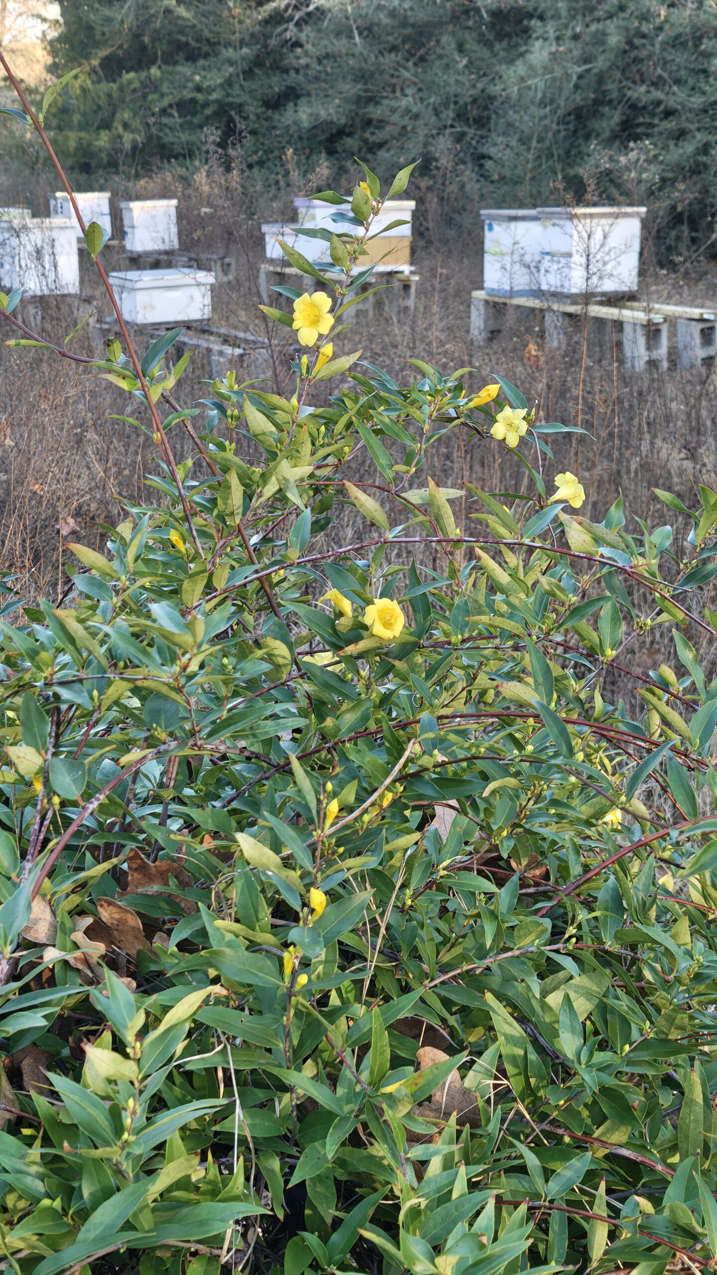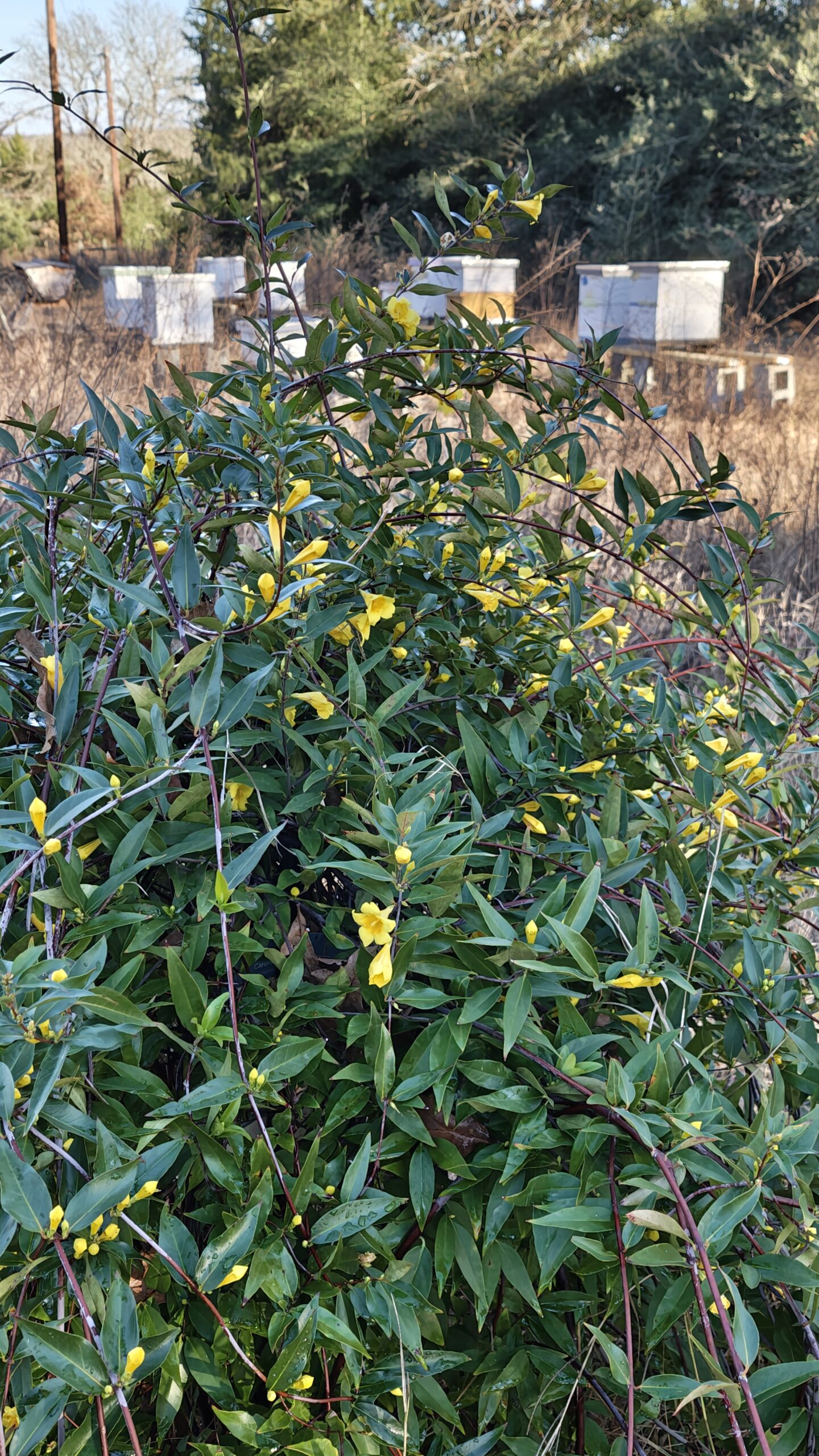 That said, I do not recommend planting Caroline jessamine as a pollinator plant for honey bees. I plant mine as ornamentals, not as pollinator plants, they just happen to be near the bee yard, and the honey bees have plenty of alternative foraging sources.